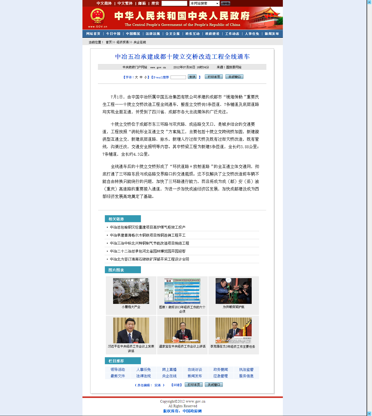 中央人民政府網報道:中冶五冶承建成都十陵立交橋改造工程全線通車