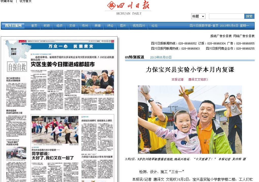 中國五冶集團副總工程師唐世榮介紹,目前實驗小學整個加固項目的工程處在前期排查隱患點階段。由于本次項目工期緊急,這次采取“三合一”的方式,三方同時進場,由中國五冶集團第四分公司負責施工,四川節能工程檢測中心負責安全隱患檢測,四川省天辰建筑設計公司負責方案設計。首先全面評估排查安全隱患,一旦發現問題立馬設計解決方案,施工方立即按照方案進行修復。目前五冶集團第四分公司首批60名工人已經到達寶興縣。據悉,本月內整個加固工程將全面完成,屆時學生能重回課堂。