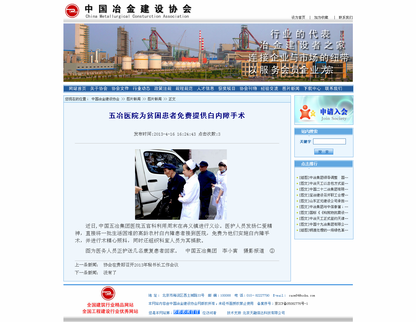 中國冶金建設網報道:五冶醫院為貧困患者免費提供白內障手術