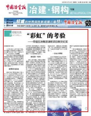 10月23日,《中國冶金報》在第5版頭條,以“彩虹的考驗”為題,對中國五冶集團(tuán)迎擊彩虹臺風(fēng),積極投入人力物力確保湛鋼項目順利復(fù)產(chǎn)進(jìn)行了紀(jì)實報道。