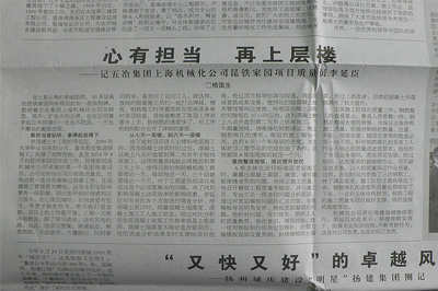 11月16日,《建筑時報》第3版,發(fā)表人物通訊《心有擔當,再上層樓》,報道中國五冶集團上海有限機械化公司優(yōu)秀員工李延臣的先進事跡。