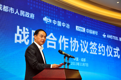 在全體與會人的見證下,中國中冶副總裁王秀峰代表中國中冶與成都市政府簽署了戰(zhàn)略合作框架協(xié)議。根據(jù)協(xié)議,雙方將在建設(shè)中冶西部區(qū)域中心、中冶天府新區(qū)創(chuàng)新科研基地、實(shí)施舊城改造、參與城市基礎(chǔ)設(shè)施項目等領(lǐng)域開展合作。